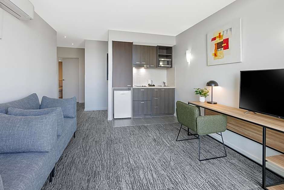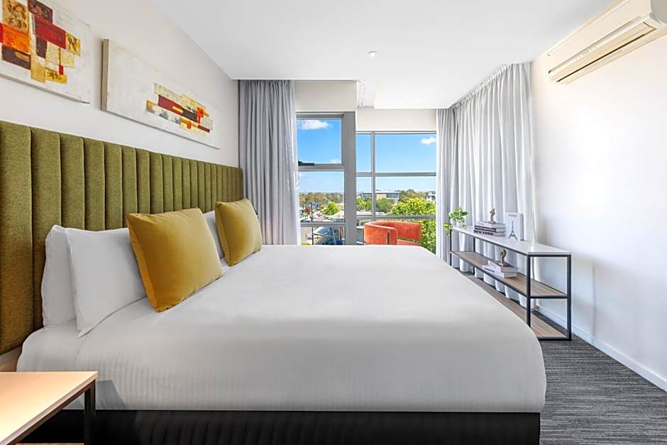 This apartment features a private balcony overlooking Caroline Springs and a spa bath. The lounge offers a dining area, a work desk and flat-screen TV with foxtel BiQ and streaming ability.